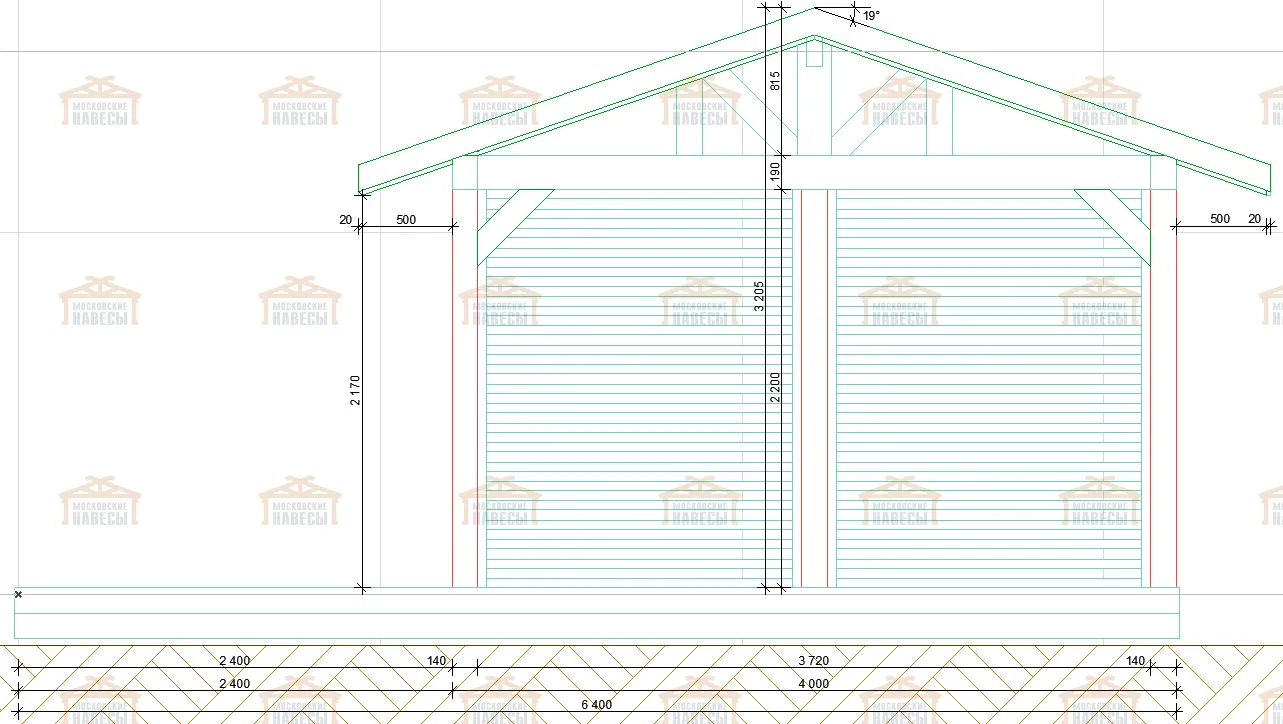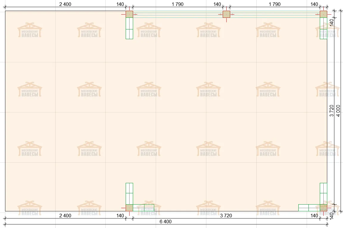 Размер: 4×6.4 м Площадь (по стойкам): 26 м² Срок производства: 42 день Срок монтажа: 2 дня