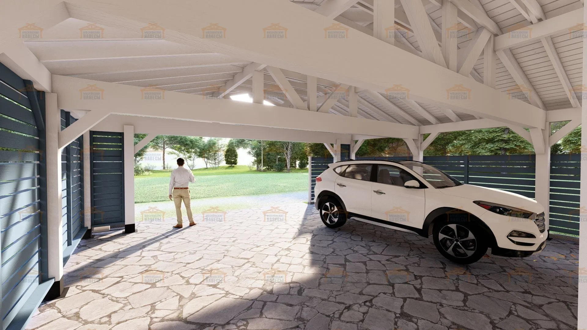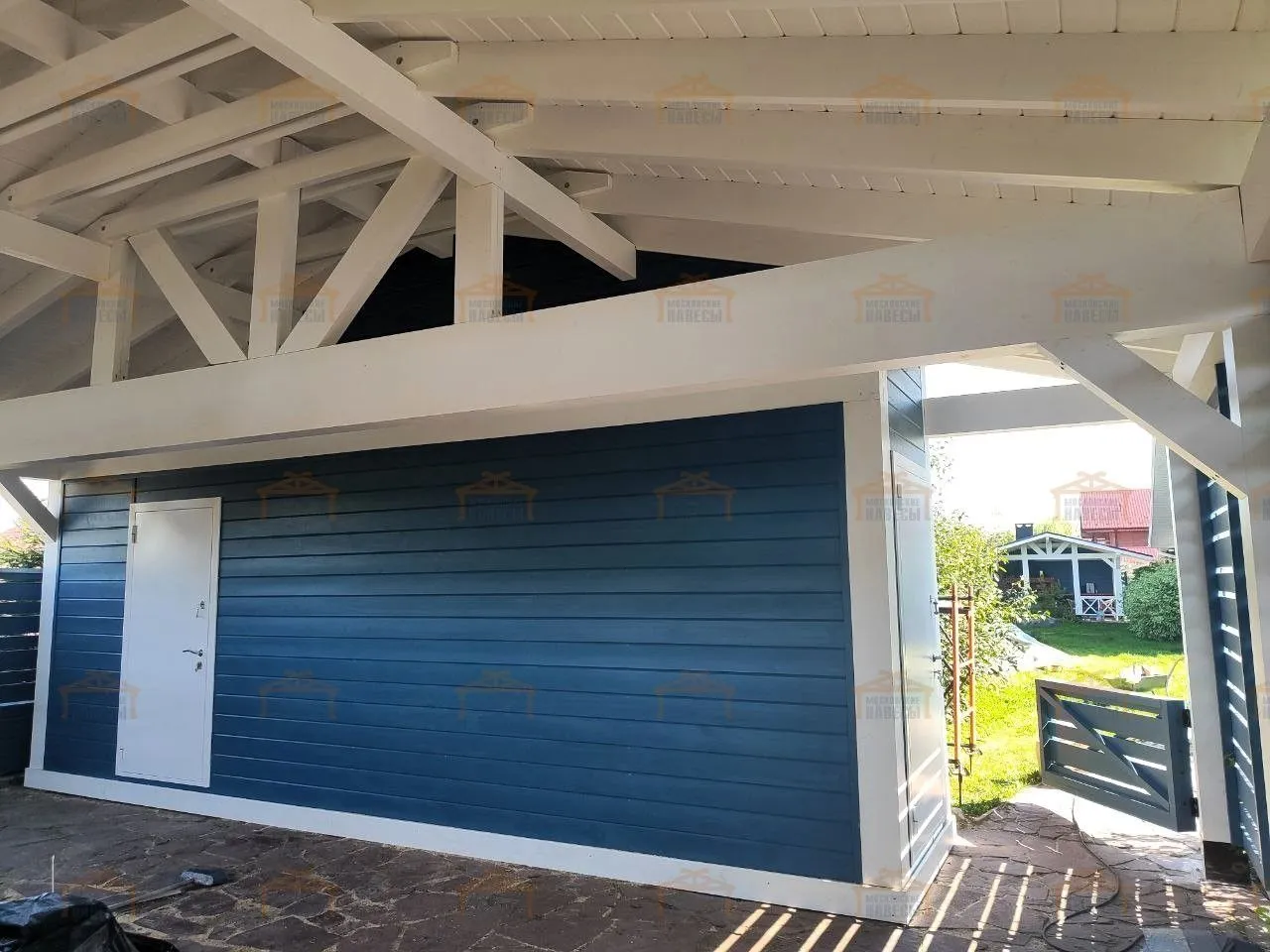 | Стойки (столбы навеса) | Клееный брус 140×140 мм |