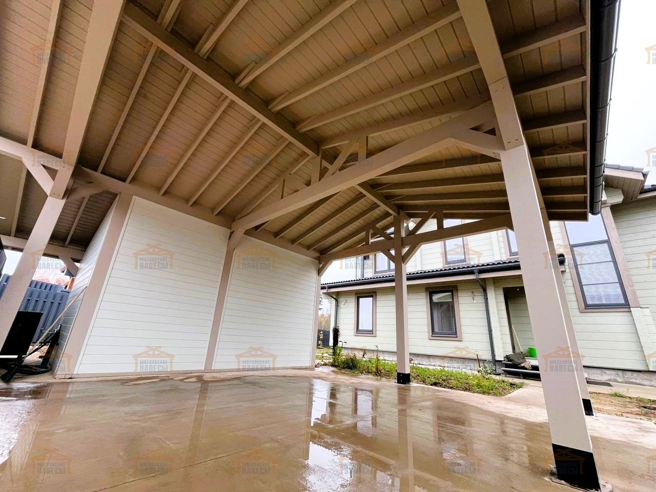 | Стойки (столбы навеса) | Клееный брус 190×190 мм |