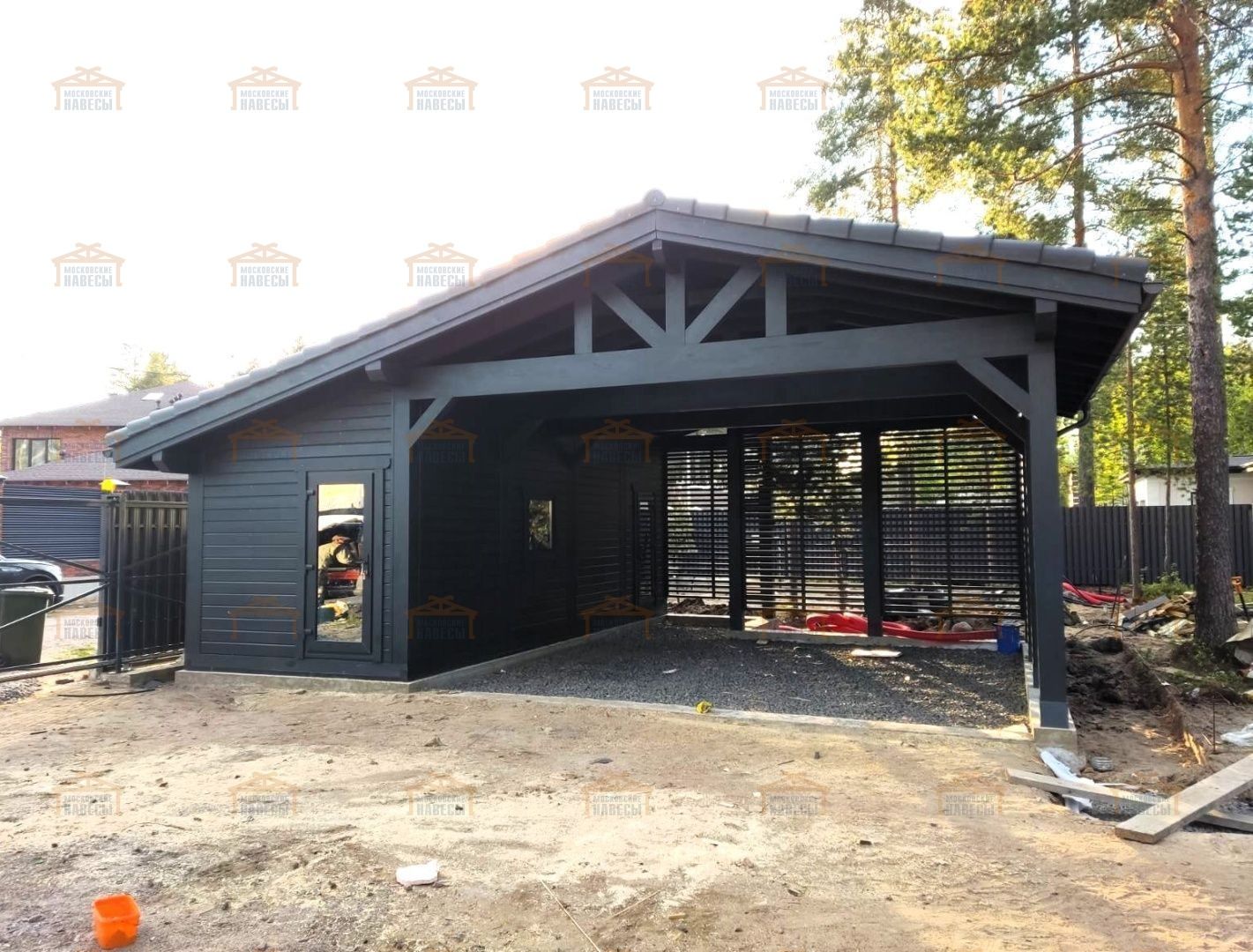 Размер: 8.3×9.1 м Площадь (по стойкам): 76 м² Срок производства: 55 день Срок монтажа: 12 дня