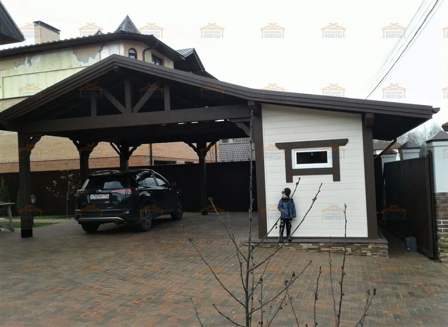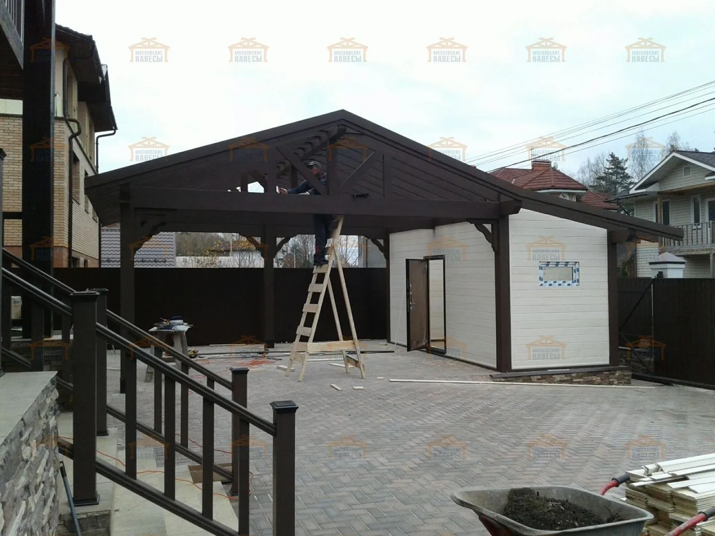 Пропитка конструкции навеса в цеху тонирующим декоративным составом класса Pinotex по выбранной Вами палитре
