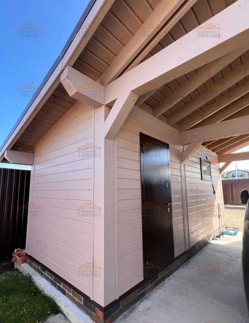| Обшивка хозяйственного блока | Внутри и снаружи имитация бруса 16 мм | Внутри и снаружи имитация бруса 16 мм | |