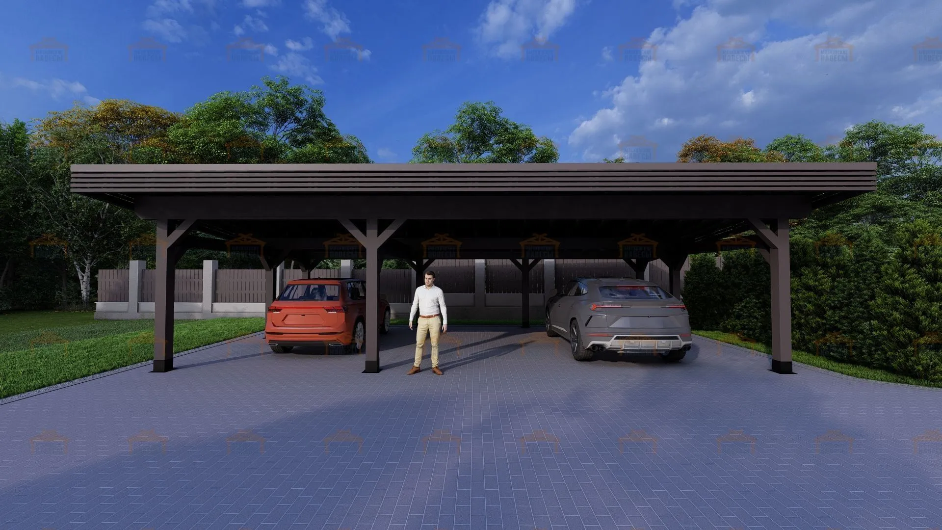 | Стойки (столбы навеса) | Массив бруса сечением 140×140 мм Примечание: возможно естественное растрескивание, которое никак не влияет на надежность. Во избежание этого необходимо использовать клееный брус |