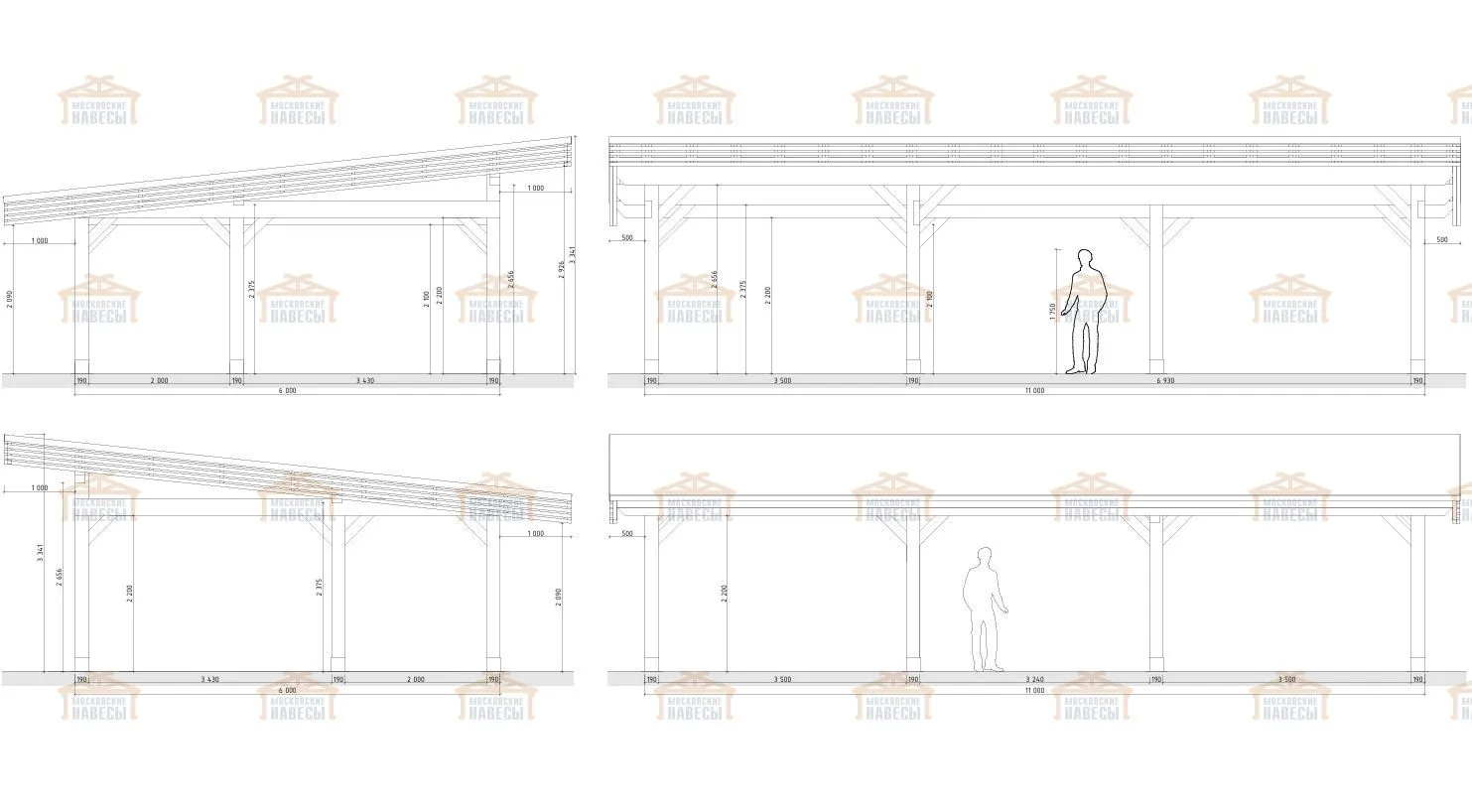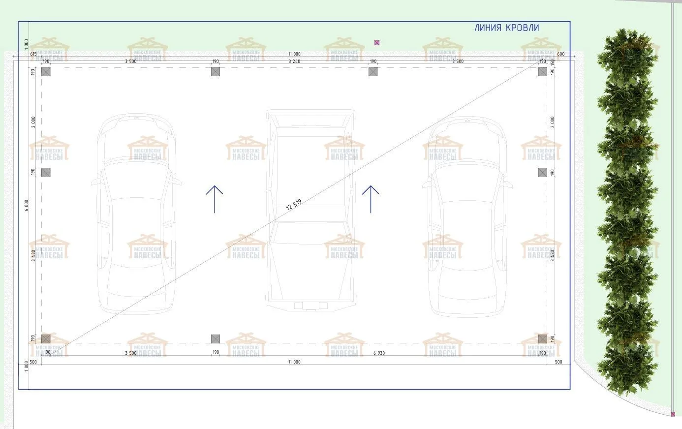 Размер: 6×11 м Площадь (по стойкам): 66 м² Срок производства: 45 день Срок монтажа: 5 дня