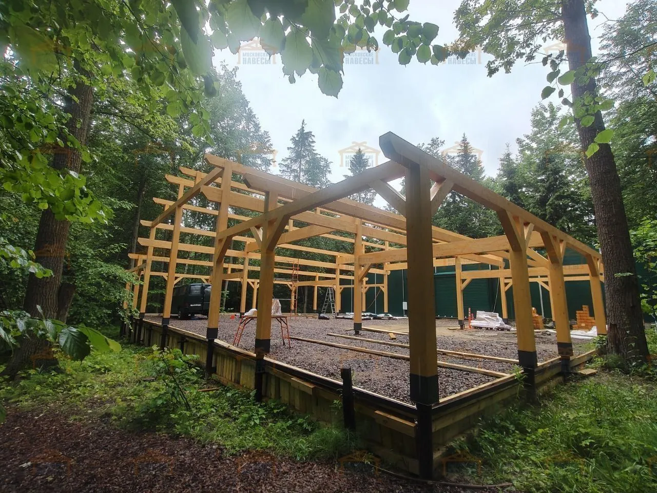 | Стойки (столбы навеса) | Массив бруса сечением 140×140 мм Примечание: возможно естественное растрескивание, которое никак не влияет на надежность. Во избежание этого необходимо использовать клееный брус |
