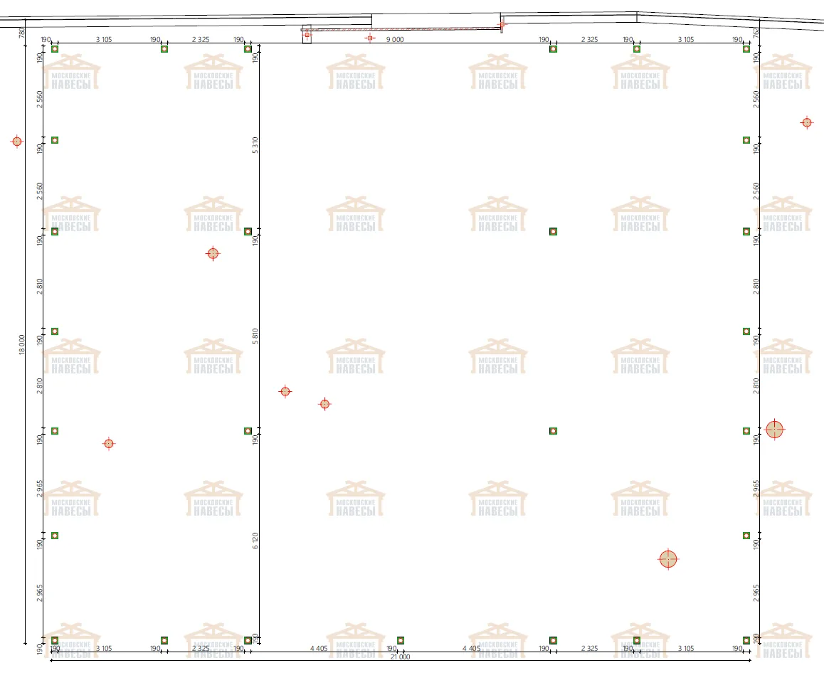Размер: 18×21 м Площадь (по стойкам): 378 м² Срок производства: 55 день Срок монтажа: 25 дня