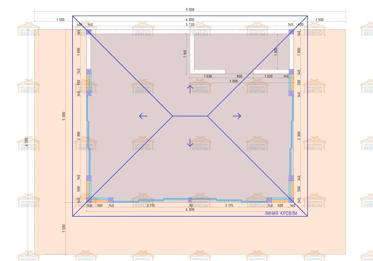 Размер: 6×9 м Площадь (по стойкам): 58 м² Срок производства: 45 день Срок монтажа: 8 дня